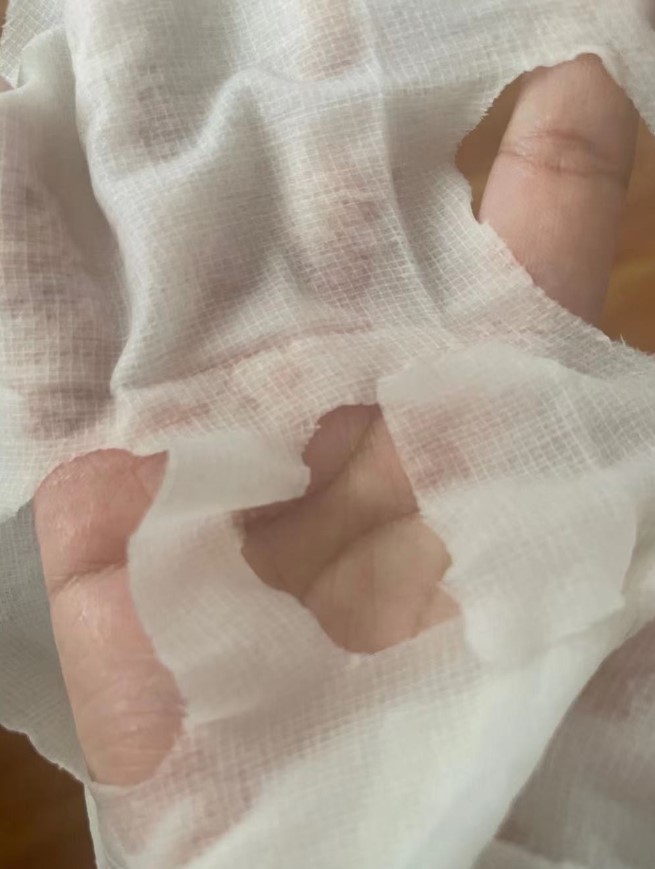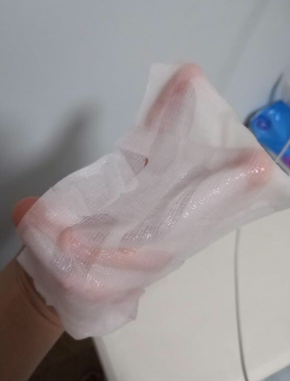 到货之后我就迫不及待地打开了一片,拆开面膜,有股淡淡的纱布味道。里面精华特别多,取片后竟然还有这么多精华也是惊艳,面膜纸不大,小脸妹子贴上也能平整铺开。 送的玻尿酸原液很喜欢,独立包装,特别方便携带,一只上脸,整个皮肤就润起来。