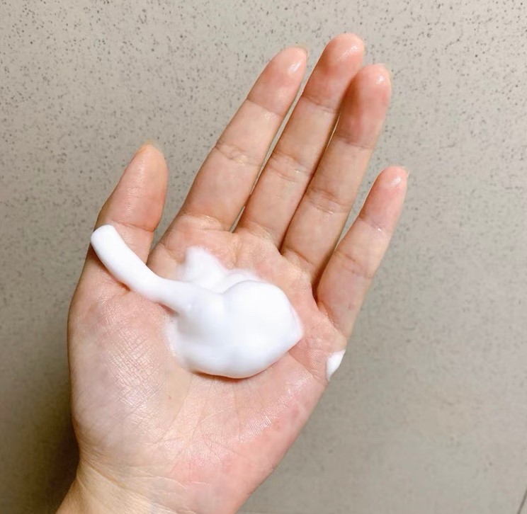 这个泡泡可以说是非常绵密了,当时我用手工护肤店的洗面奶虽然也是按压出泡泡,但是可以看到有很多洞洞的泡泡,不是绵密的。而这个,按压出来你只会看到一坨,那些洞洞是看不到的,手感也超级棒啊,超可爱的手感哈哈哈,上脸也是非常舒服的,我一般用量是一泵,用量还是很省的。