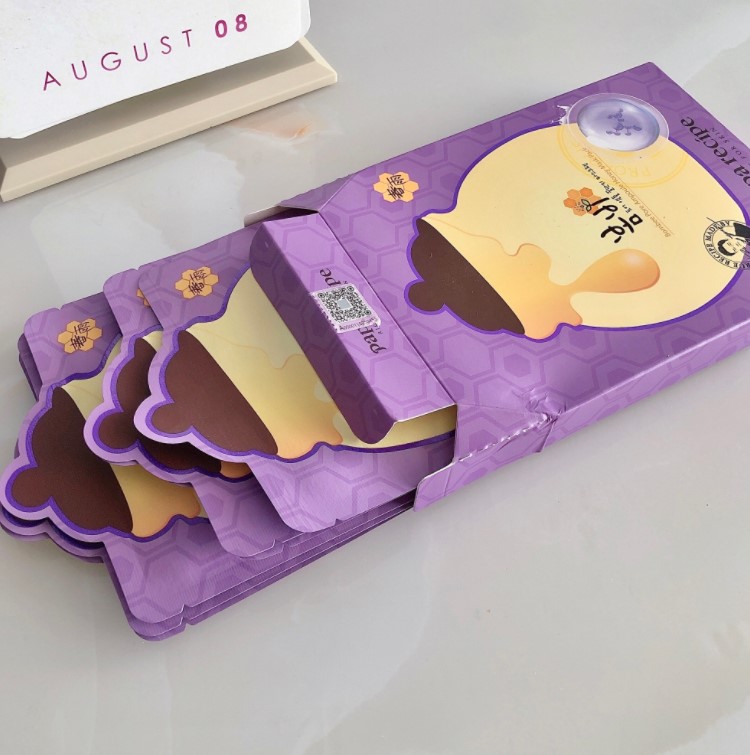 这款紫春雨面膜包装颜值是真的很高,拆开之后里面的精华液很多,而且也是紫色的,并且有封面和柠檬的清香,很好闻。