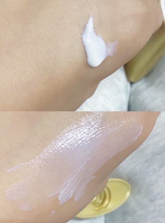 小金瓶的主打超强防晒、防水、防汗,上脸无妆感,成膜速度快,涂改液质地,颜色微白,但是涂在脸上没有任何颜色,不油腻也不会拔干,即使厚涂也不会搓泥,流动性很好,轻轻推开,不会厚重。