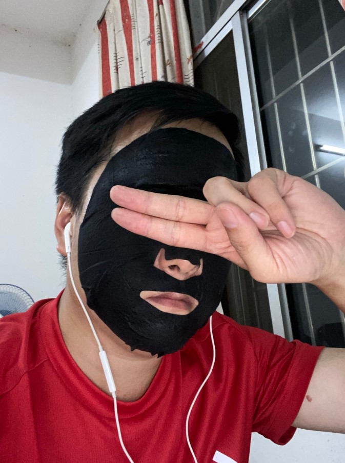 膜布看起来比较厚的样子,红红的一大张,不过是深红色,虽然厚,但是贴合度是我用的这么多面膜中最好的一个,真的是完全无皱纹贴合,眼睛鼻子嘴巴的孔洞也开的十分合理,完全不会遮住,虽然厚重,但是也不会滑落。