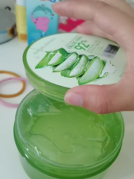 这款自然乐园芦荟胶是被我朋友安利的,最近换季,我的脸比较的敏感而且也是干皮,很不舒服,就想着买一款补水保湿的护肤品,我朋友就安利了这款芦荟胶给我使用。