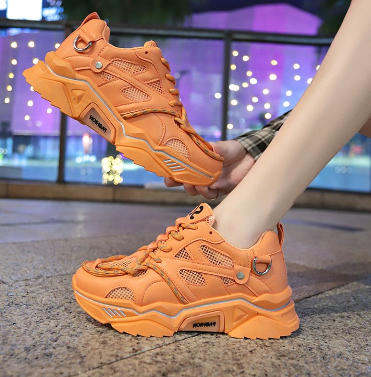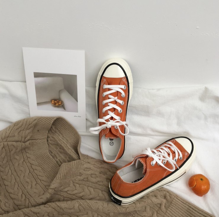 橙色这个颜色本事就是属于偏亮的颜色,所以我们在穿搭衣服和裤子的时候可以选择不要太过于亮的颜色,让鞋子成为焦点所在,搭配的颜色可以是相近色或者撞色,以及黑白的经典色。