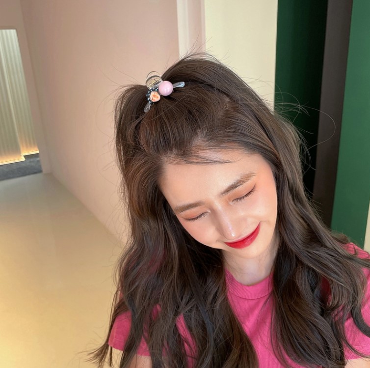 step3:用小鲨鱼夹把头发固定起来,并在固定处喷上定型喷雾。要喷得分散、均匀一些,不然头发就会黏在一起,看起来很像新娘头。
