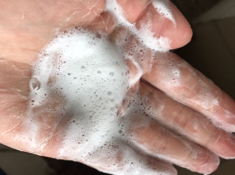很粘稠,单纯的加水用手化开的话,泡沫比较稀疏。里面没有颗粒,比较细腻。所以我把它当成膏用,用起泡网打出了比较丰富的泡沫。