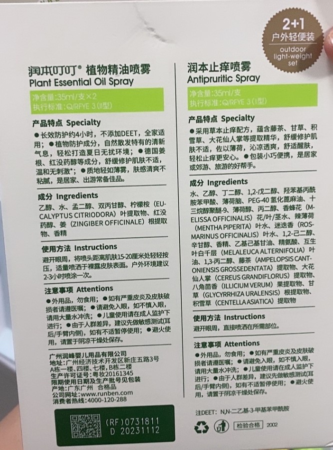 润本这个品牌是专门生产经营售卖婴儿生活用品的品牌,它家的有些产品其实不管是婴儿成人都是可以使用的,最近也是到了军训的时候,润本驱蚊喷雾可以很好的带到军训基地使用,下面来看看这款效果怎么样。