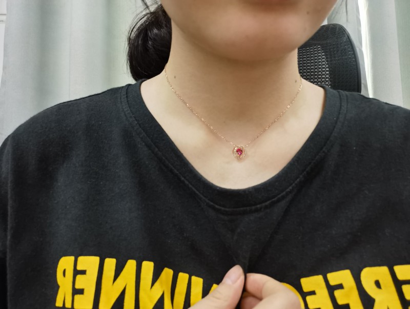 总结:不管是项链本身的设计还是外包装盒的设计都是很好看的,中间的水晶是整体的亮点,仿佛就像是真正的心在跳动一样,真的太好看了,在七夕节的时候送这款项链绝对不会翻车。
