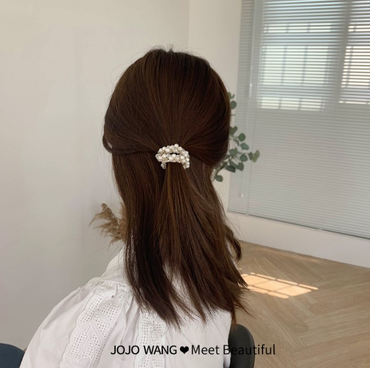 step 1:首先,将一束耳朵上方的头发向脑后扭转,并用一字夹如图所示固定好发束的位置。