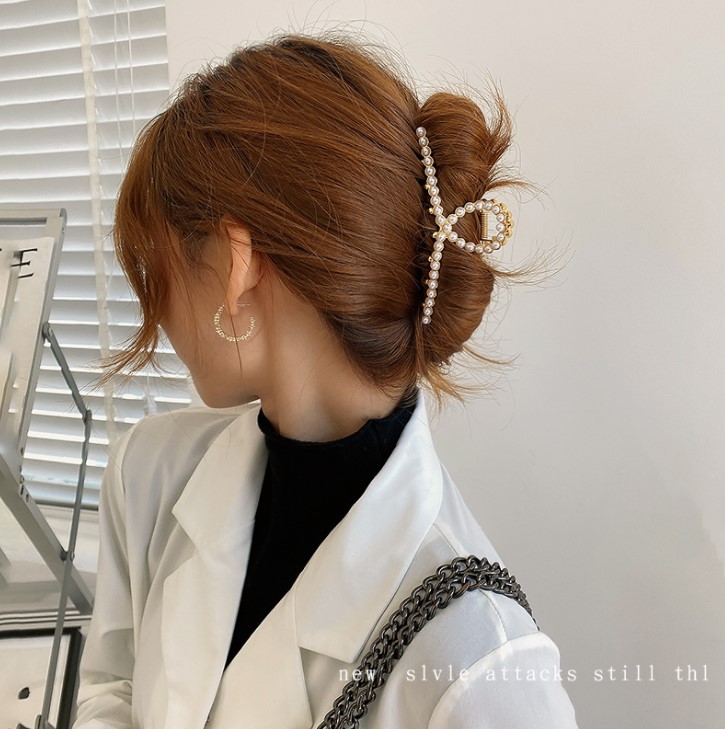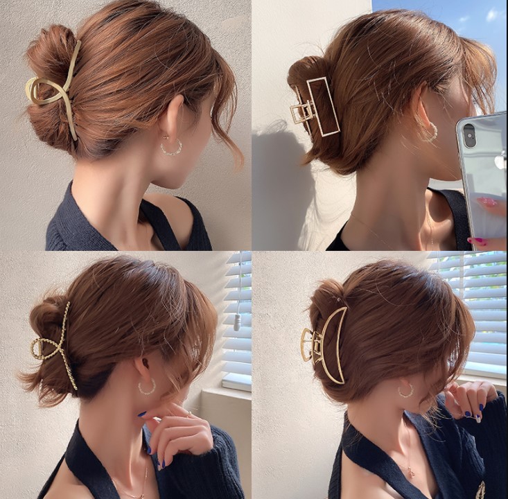 我们可以先半扎一个公主头在后脑勺的位置,将头发对折几下,然后再使用夹子将固定起来,这样的头发比较的优雅有气质,或者把所有的头发都是要夹子夹起来,固定在脑后,比较火的奶奶头,