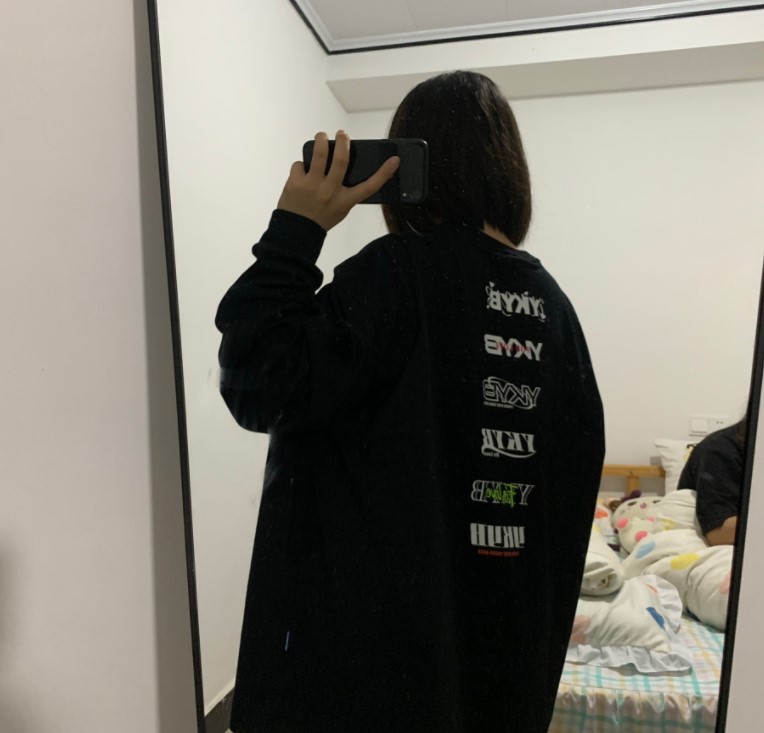 总结:这款长袖在秋天穿着是很不错的选择,穿起来不会很热很冷刚刚好,百搭款式很舒适,衣服上的印花设计主打logo设计,有创意很不错,性价比高。