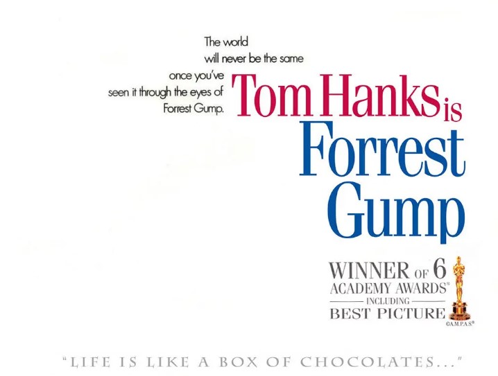 电影改编自美国作家温斯顿·格卢姆于1986年出版的同名小说,描绘了先天智障的小镇男孩福瑞斯特·甘自强不息,最终“傻人有傻福”地得到上天眷顾,在多个领域创造奇迹的励志故事。电影上映后,于1995年获得奥斯卡最佳影片奖、最佳男主角奖、最佳导演奖等6项大奖。