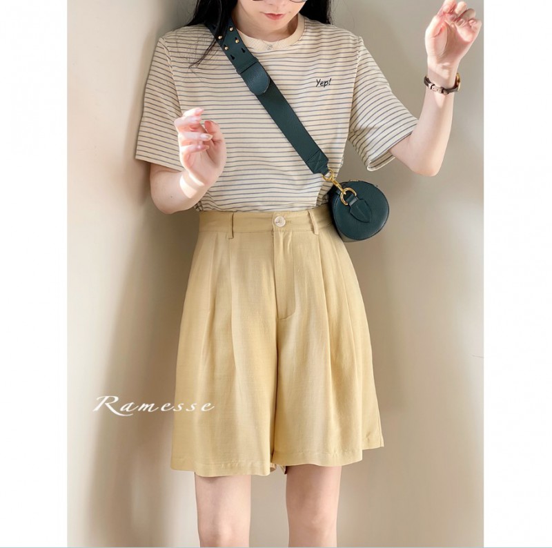 短裤是在夏季很多人穿的一款裤品,穿上短裤既好看又凉爽,黄色短裤是近几年比较流行的颜色款式,那么应该怎么搭配上衣会比较好呢?