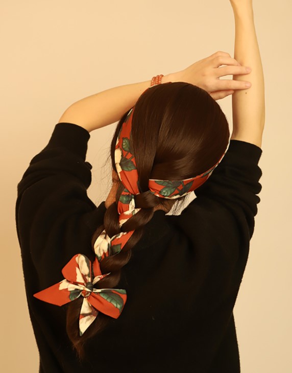 喜欢法式风情的女生,那么这款低马尾丝巾绑发可一定要尝试一下,选择一条你喜欢的司机样式,随意简单的在低马尾上绑一个蝴蝶结,浪漫又少女,很适合度假的海边,拍照是非常不错的。