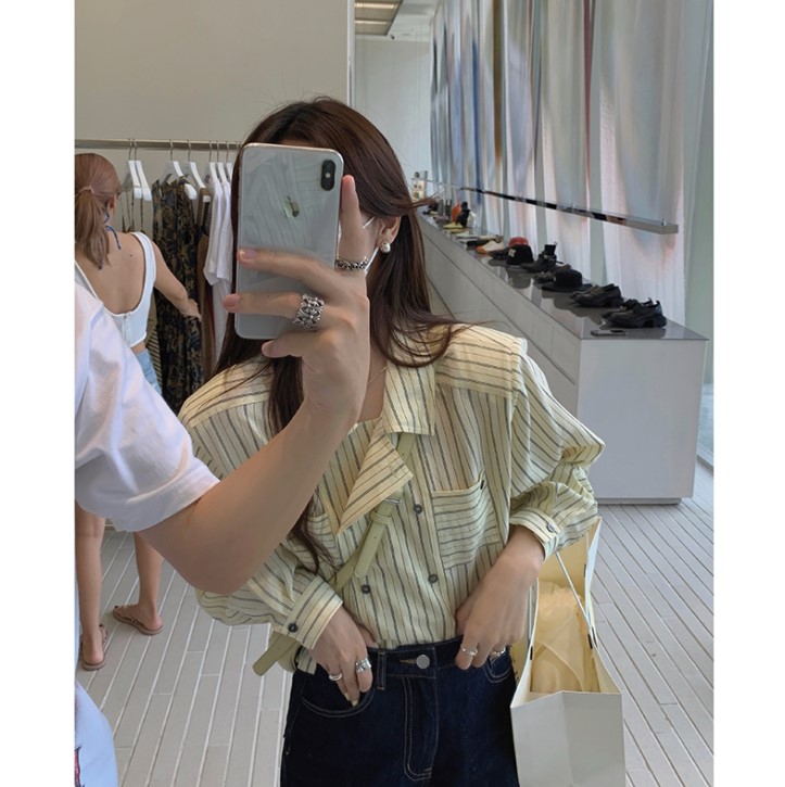 黄色上衣可以搭配奶白色高腰款式的裤子,奶白色和黄色的颜色比较相近,看起来也更加和谐。裤装选择腰部比较有设计感的裤装,把上衣的部分扎在腰里,能够提高腰线。