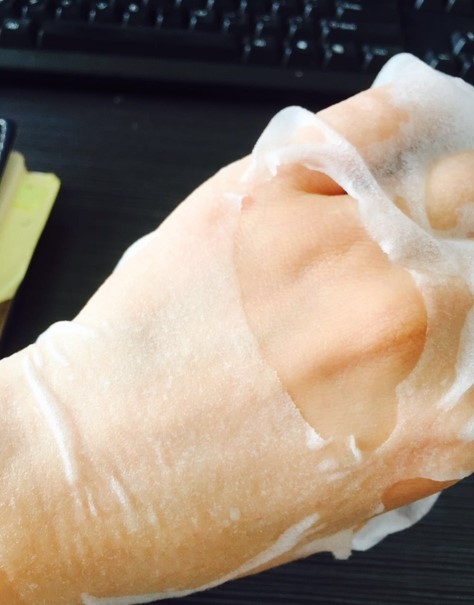 面膜超级的水润,敷面15分钟,面部很滋润,我本身是敏感的肌肤,这款面膜用起来非常的舒服,而且很清透,这么敏感的肌肤用了都没事,所以觉对的安全好用哦,剩下的拿来敷在手部,一样水当当的,不错哦!