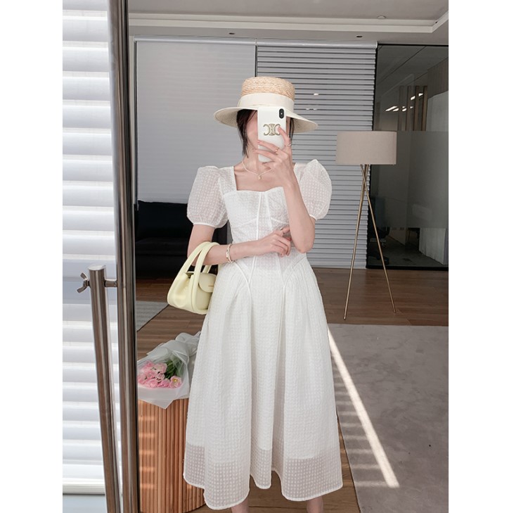 质地轻盈的白色长裙能够给人一种仙气飘飘的感觉,这样的穿搭也常常会显得温柔无害,没有攻击性。用白色的长裙,搭配同色的白色手拿包,则可以给人增添精明、干练的感觉。整体上的颜色十分地干净简约,看着也会很舒适。