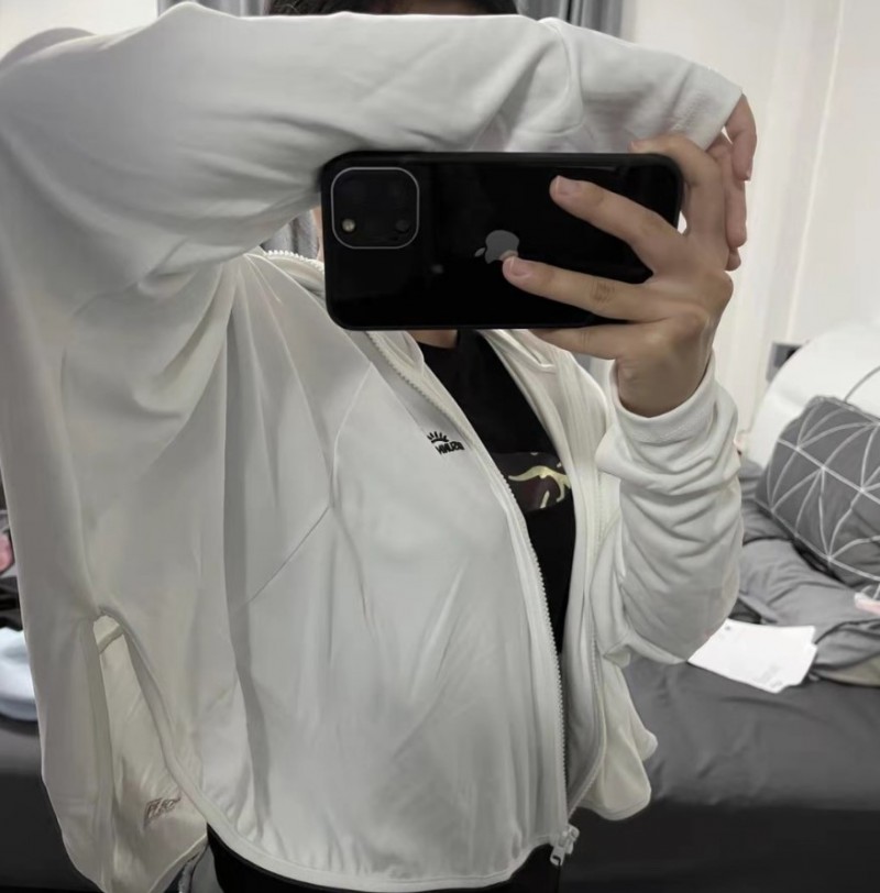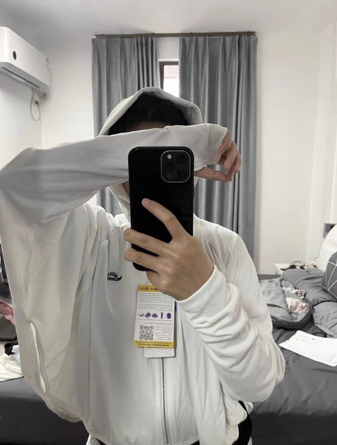 防晒等级很高, 夏天出门必穿神器,这个是冰丝的面料摸着滑滑的挺舒服的,穿着非常的贴身凉快,做工精细,衣服也没有异味没有线头,薄薄的非常凉快, 穿起来非常的青春阳光,防护很全面。