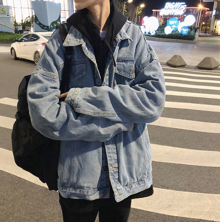 牛仔外套里面圆领紧实内搭,牛仔外套大家可以选择一些比较大的,然后搭配上一些比较细密紧实一点的内搭服饰可以穿出显瘦的效果,牛仔外套搭配上t恤减龄而且百搭。