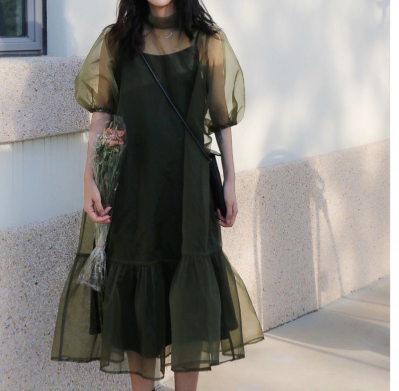 浅粉色裙子搭配墨绿色,让人眼前一亮,少女心和复古感都有了。这种浅粉色的饱和度很低,一点也不提甜腻,很清爽。如果不喜欢大面积粉色的话,一副浅粉色的墨镜也可以很美。粉色的选择最好是越浅越好,带点偏灰的色调就更出彩了。相比之下,深粉色搭配墨绿就没那么好看了。
