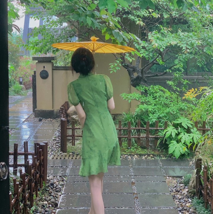 长方形:即大骨架的姑娘,拒绝长袖、无袖旗袍,短袖、连肩袖会使上半身看起来舒服。