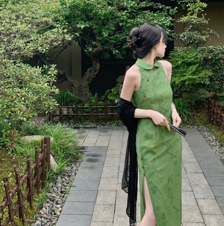 这类旗袍的长度一般都是到脚腕,从上身到臀部的曲线被勾勒的很清楚,身材凹凸有致的女性穿着长旗袍更具有欣赏性。因为长旗袍的长度把整个人都包裹了,所以对于腿型不好看、腿部较粗的女性很友好;而对于腿型完美的女性来说,挑选长款高开叉旗袍会更好,既能修饰身形又能露出美腿。