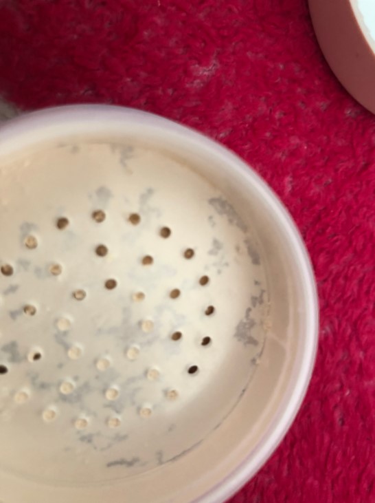 总结一下:这款散粉的香味虽然有一点浓,但是也不会很刺鼻的那种,粉质方面是比较细腻的用在脸上的话可以很好地弱化毛孔,带有一定的遮瑕能力,服帖不易脱妆,定妆还是挺持久的。
