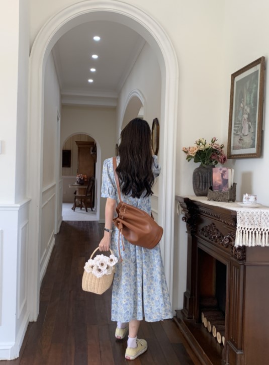 这样的系法会比较清爽,夏天里穿起来更加轻盈浪漫。很多少女风的连衣裙,一片式的设计,都会选择纤细的长带子来点缀,增强整体视觉的层次感。