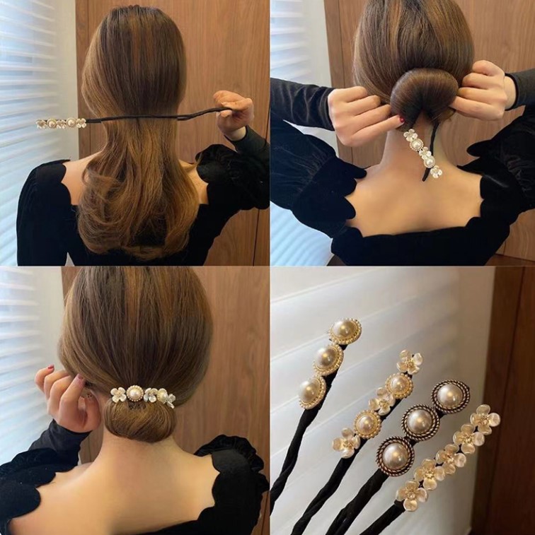 半丸子头可以先把头发分成上下的两个部分,然后上半部分扎好并且发尾使用发箍盘起来,下半部分的头发需要扎起来,自然落下即可,比较简单易懂也好上手。