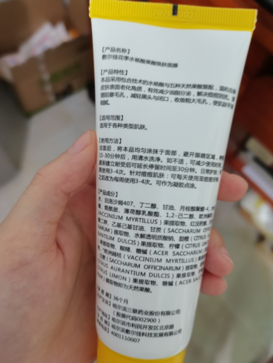 敷尔佳属于哈尔滨敷尔佳科技发展有限公司,品牌主要是以医用研发护肤产品,成分都是比较的安全有经过国家的检验的,可以放心使用,敷尔佳水杨酸果酸焕肤面膜是比较出名的一款产品,来看看使用的效果吧。