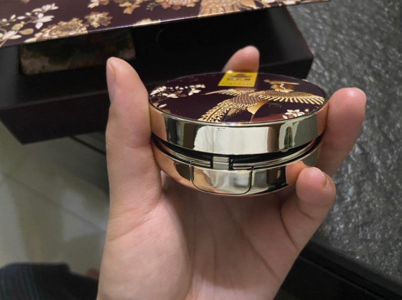 真是国潮彩妆的骄傲!包装质感设计使用感都没话说!无可挑剔!颐和园气垫礼盒超级好看,很高级,宫廷的图案,3D镂金的雕刻!还送一个替换芯。