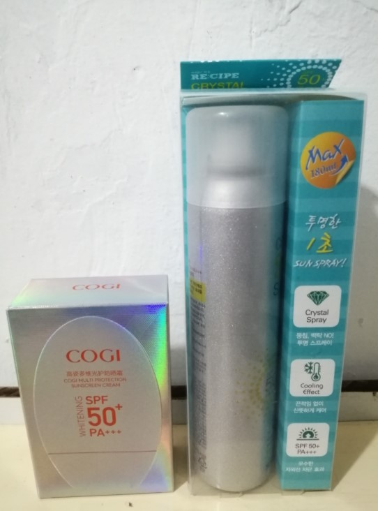 韩国RECIPE莱斯壁玥之秘定妆水晶防晒喷雾SPF50男女全身180ml