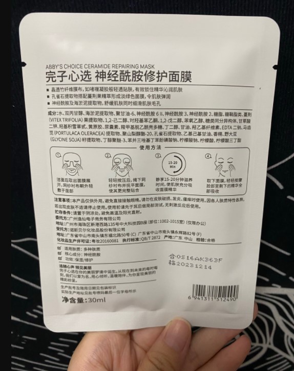 完子心选神经酰胺面膜这个产品我是看到有美妆博主推荐过来的,我自己的面膜也是使用完了,皮肤属于比较敏感的那种肤质,看到这个博主说敏感肌使用也是不错的选择,我就购入了。