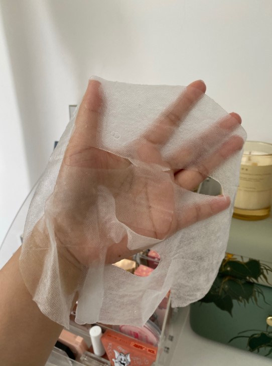 面膜的质地是纯棉的,拿在手里沉甸甸的十分厚实,面膜摊开后的面积也大。敷在脸上的包裹感很强,实实在在的感受到了面膜对脸上肌肤的覆盖,特别的贴肤。