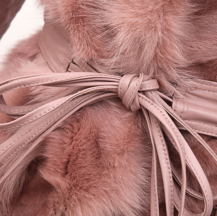 2、其次看是不是整皮,整皮当然最显档次也最贵了,拼的也行,,毛针细腻的比粗的保暖显档次,底绒越丰富越好。