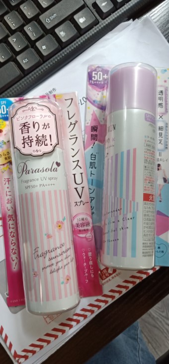 总结:包装美丽,瓶身做工精致,粉色调美极了,满满的少女心,包装设计简直满分都不够,哈哈,喷头做工很好,雾化性很好,产品不油腻,清香,成膜很快,还能发用,瓶子不大便于携带,防晒指数高,足够日常和旅游使用,最后,价格还实惠。