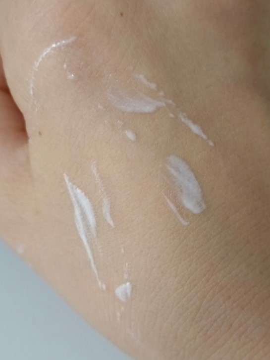 这款防晒霜质地流动性强,乳白色类似于乳液一样的质地,延展性很强,极容易推开。水润不黏腻,轻薄而不厚重。