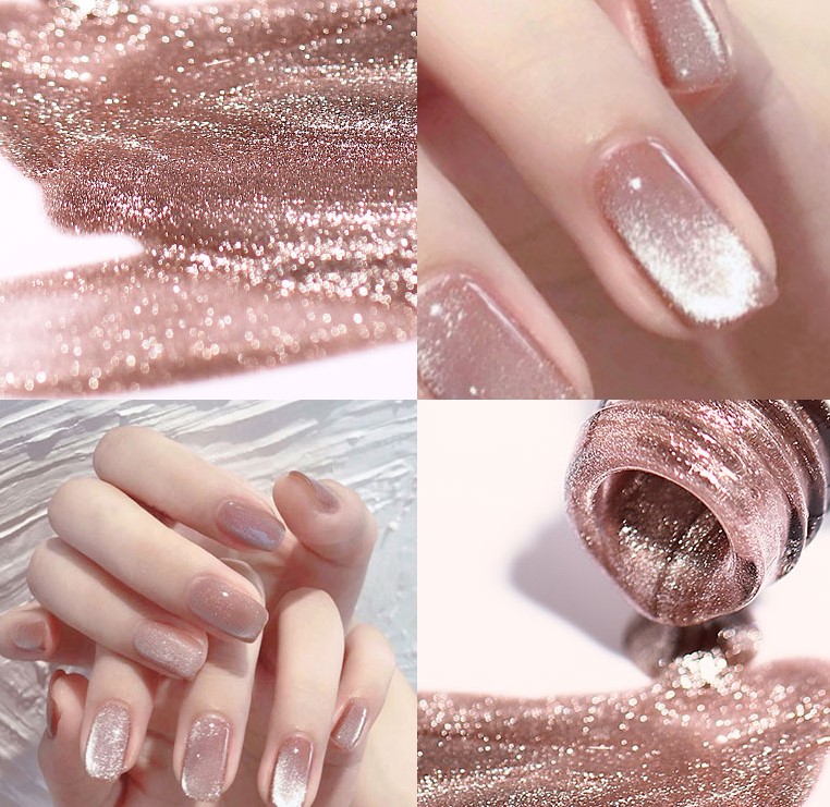 猫眼指甲油里有一些金属成份可能是磁石粉之类的。 涂完后趁甲油还是液态的时候,用吸铁磁石把指甲油里的金属吸聚在一起,形成一种猫眼的效果。你会发现你的吸铁磁石放什么角度,你的猫眼光泽就是什么角度。