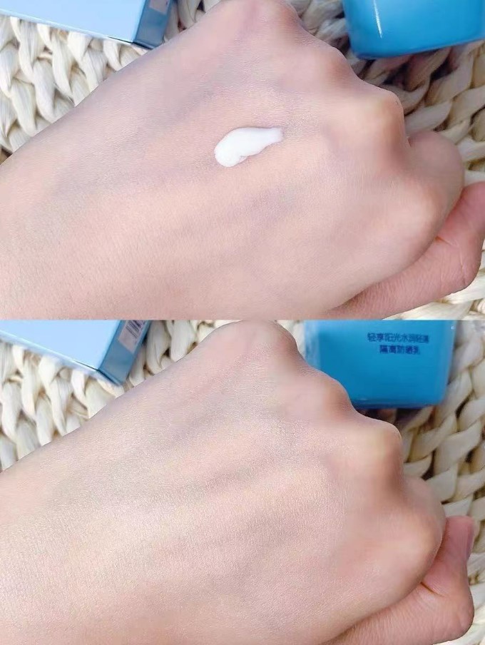 我是早上洗完脸护肤水以后用这个防晒,液体状很好推,渗透快,延展性也不错。薄薄涂抹一层,感觉皮肤会亮一个度,保湿性也不错,比我用过的其他防晒保湿度都高。
