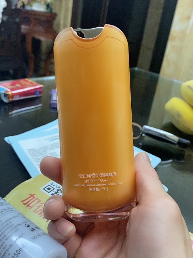 总结:涂在皮肤上很清爽透气,一点也不油腻,感觉有一点提亮效果。送的水也很好用,涂在皮肤上很滋润。优点:味道淡淡的,涂在皮肤上非常清爽,皮肤没有负担、是我喜欢的防晒霜类型。
