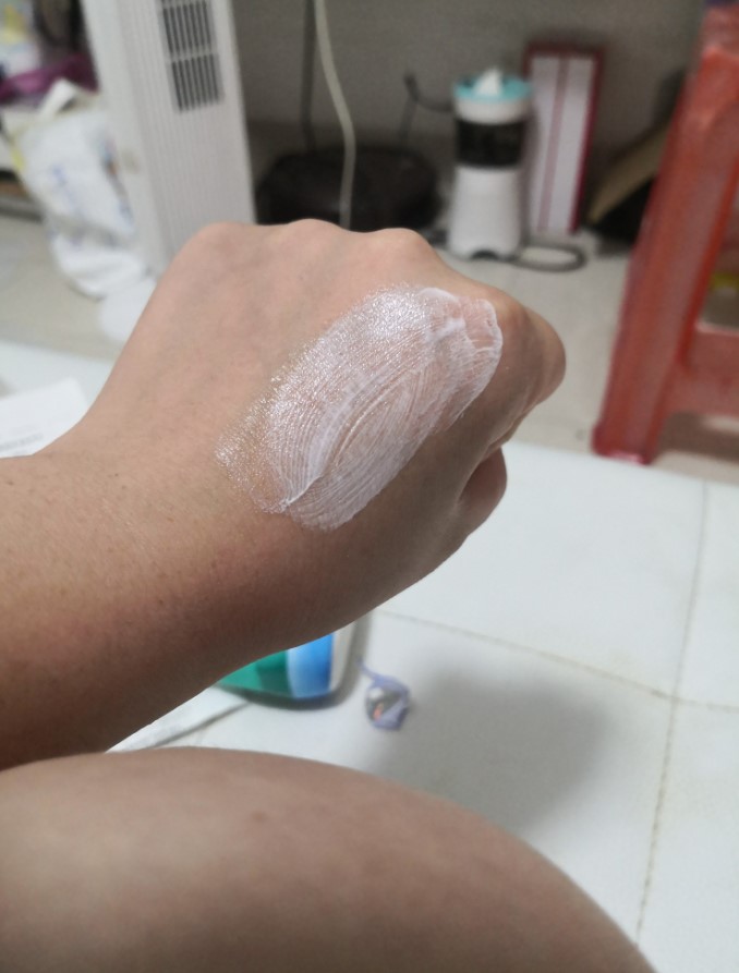 霜体浓稠适中。很容易抹开吸收快,不假白。不觉得很油,只是刚抹上去的时候有点点油,慢慢吸收后就不觉得了。防晒还可以,在外面逛了两三个小时没有变黑。