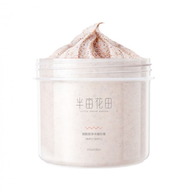 半亩花田磨砂膏质地比较绵柔,搓到皮肤上不会有粗糙的颗粒感,体感比较舒服,虽然里面含有一些胡桃颗粒,但相对来说比较细密,完全没有刺痛感,也比较润滑,好抹开。之前用过其他的多数都比较注重“磨砂”二字的效果,所以抹在皮肤上有很严重的沙砾感,最严重的是有一款抹在身上像小石子一样,磨得皮肤又硌又红。因为实在是太疼了,几乎类似于浴盐的质地和感觉。