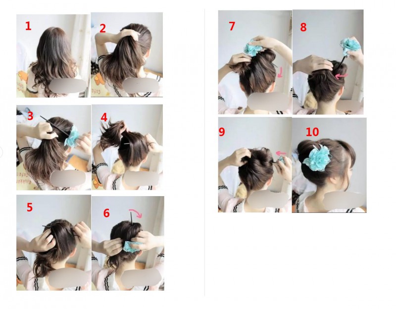 10、比起我们平时扎得花苞头要柔美一些,特别是在花苞的地方做了绕圈之后更加可爱,还有发簪上的花朵让你不需要发饰就能非常漂亮哦!