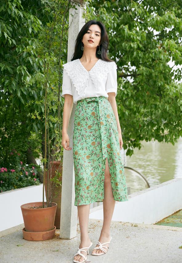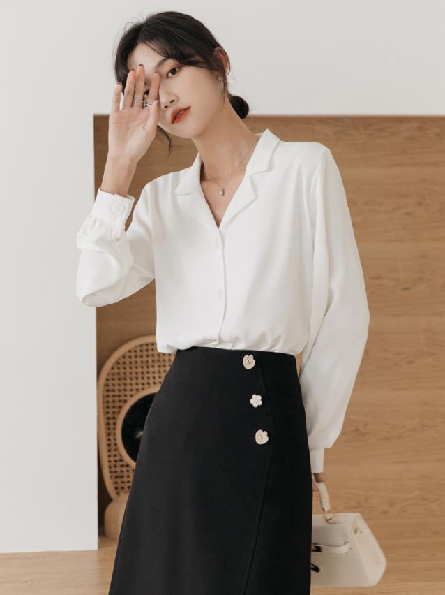 白色和黑色是非常经典的两种搭配,这款白色衬衫简约、大方,搭配一条黑色西装裤,简单、大方又非常洋气。