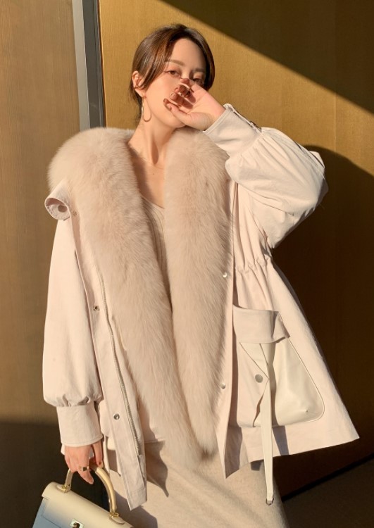 狐狸毛的特点:与貉子毛的特点差不多,一般人也比较难区分出貉子毛与狐狸毛,狐狸毛和貉子毛相比,除了和貉子毛一样具有粗旷奢华感之外,更比它多了一份类似于兔毛的柔软与细腻,所以狐狸毛也是这几种毛皮中售价最高的,当然,狐狸也分狐狸的身上毛与尾巴毛,身上毛的价格高于尾巴毛的好几倍,因其价格昂贵只有在一些非常高档的品牌及名牌服饰中,才会运用到整张的狐狸身上毛。而一般的品牌通常会运用到狐狸尾巴毛来装饰棉袄的帽檐。