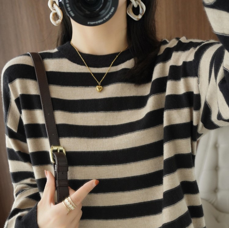 选购时先看整件羊毛衫的颜色、款式等是否喜爱,然后看羊毛衫的毛线条干是否均匀,有无明显的斑块、粗细节、厚薄不均以及有无编绘和缝纫方面的缺陷;