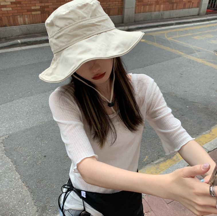 渔夫帽,由来自然是垂钓方面的装备。专业渔夫帽一般是防水防晒材质,之后演变成一种时尚帽型,所用布料和花色也更加百变。戴上色系和帽型适合的渔夫帽后,能为整体造型营造更佳层次感的同时,还可以修饰脸型。帽檐短小的渔夫帽适合脸型较长的友达,而大脸的友达则可选择帽檐较长的渔夫帽。渔夫帽搭配长发是再合适不过了,两边垂下的头发能平衡帽子带来的沉重感。记得中分头发,保量两边发量的平衡 ,发梢微微的卷曲用手抓乱即可,这样的质感才适合渔夫帽的随意和低调。这个渔夫帽压低的帽檐下露出模特的金色长发和下巴姣好的线条,悠闲又神秘。Burberry秀场的这个渔夫帽压低的帽檐下露出模特的金色长发和下巴姣好的线条,悠闲又神秘。