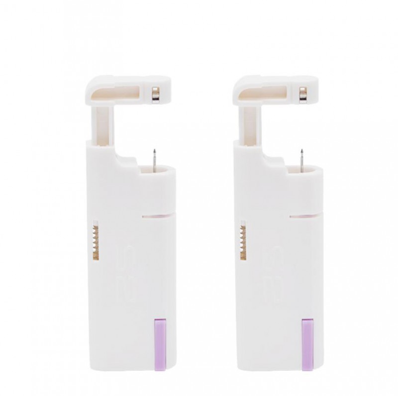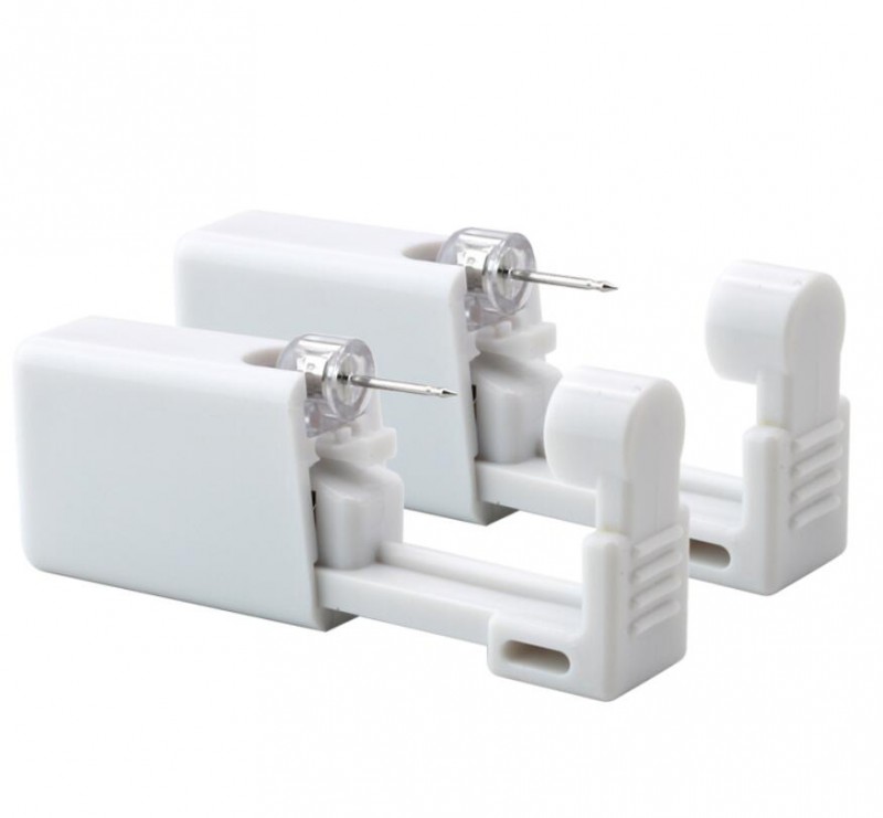 一次性穿耳器。随着社会的发展和流行元素的不断升级,人们在关注时尚个性的同时,对卫生健康的需求概念更是日益增强。一次性的穿耳器逐渐代替了原有的传统穿耳方法。市面上有迪力博一次性穿耳器、弗司美特等较为有名,这种一次性无菌穿耳器一般由塑料压杆、316不锈钢耳针、不锈钢耳钉座与塑料U型夹体组成。手持U型夹体在耳垂或软骨上进行操作即可。该设备体积精巧、构造简单、成本低,易于制造,操作方法容易掌握,基本自己就可以给自己打耳洞。