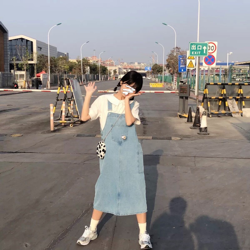 背带裙不但可以搭配高跟鞋,还可以搭配很多款式的鞋子哦!搭配高跟鞋会让穿背带裙的你显得淑女,看起来也高挑。想尝试高跟鞋搭配背带裙的集美们赶紧试试吧!