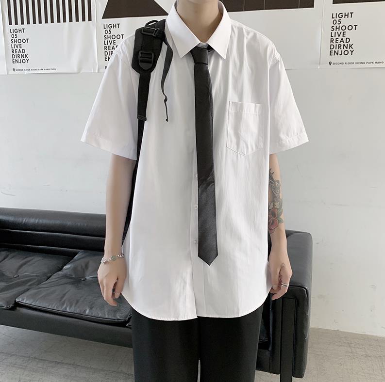 除了错位的扣法之外,我们还可以选择很多穿法,比如反穿法、慵懒穿法、绑带法等等。如果是反穿法,方法是将衬衣的前后反过来,前面穿在后面,后面穿在前面,衣服会瞬间变成一字领,但要看衬衣的款式。