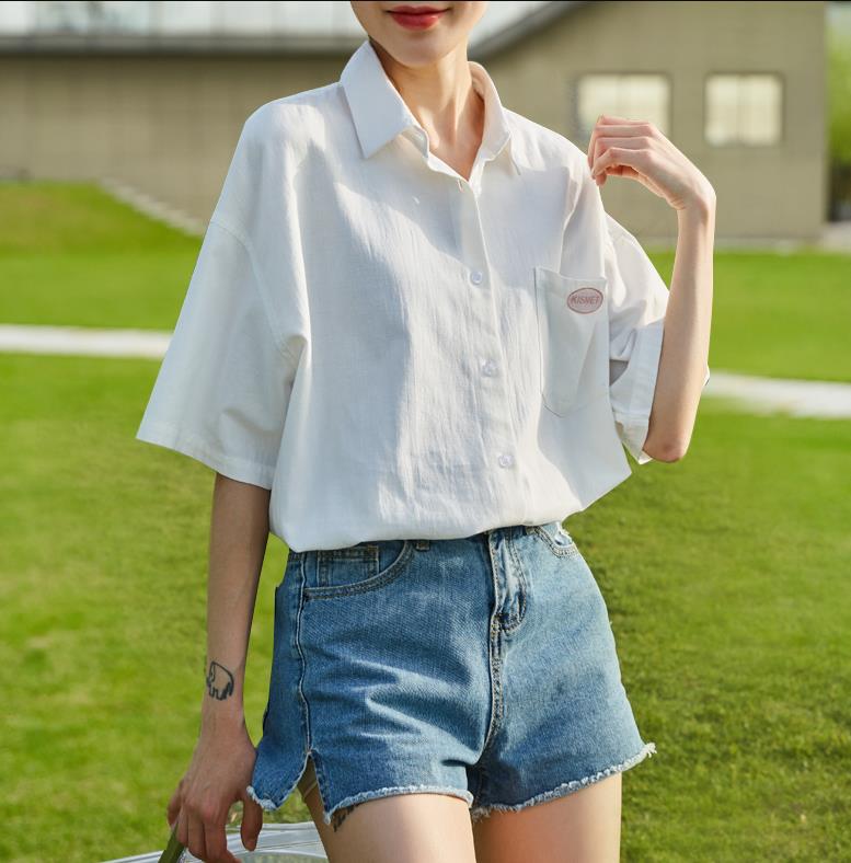 衬衫露肩穿。夏天谁不想露出漂漂亮亮的锁骨呢?衬衫露肩穿,打破常规的穿法,在衬衫的禁欲中融合一丝女性特有的性感与柔美,性感而不低俗的美女,谁会不喜欢呢。按照常规衬衫的扣法,将衬衫胸前的几颗扣子解开,然后拉开衬衫让它形成一个大V领,露出你的圆润可爱的肩头和性感的锁骨,简直太美了。